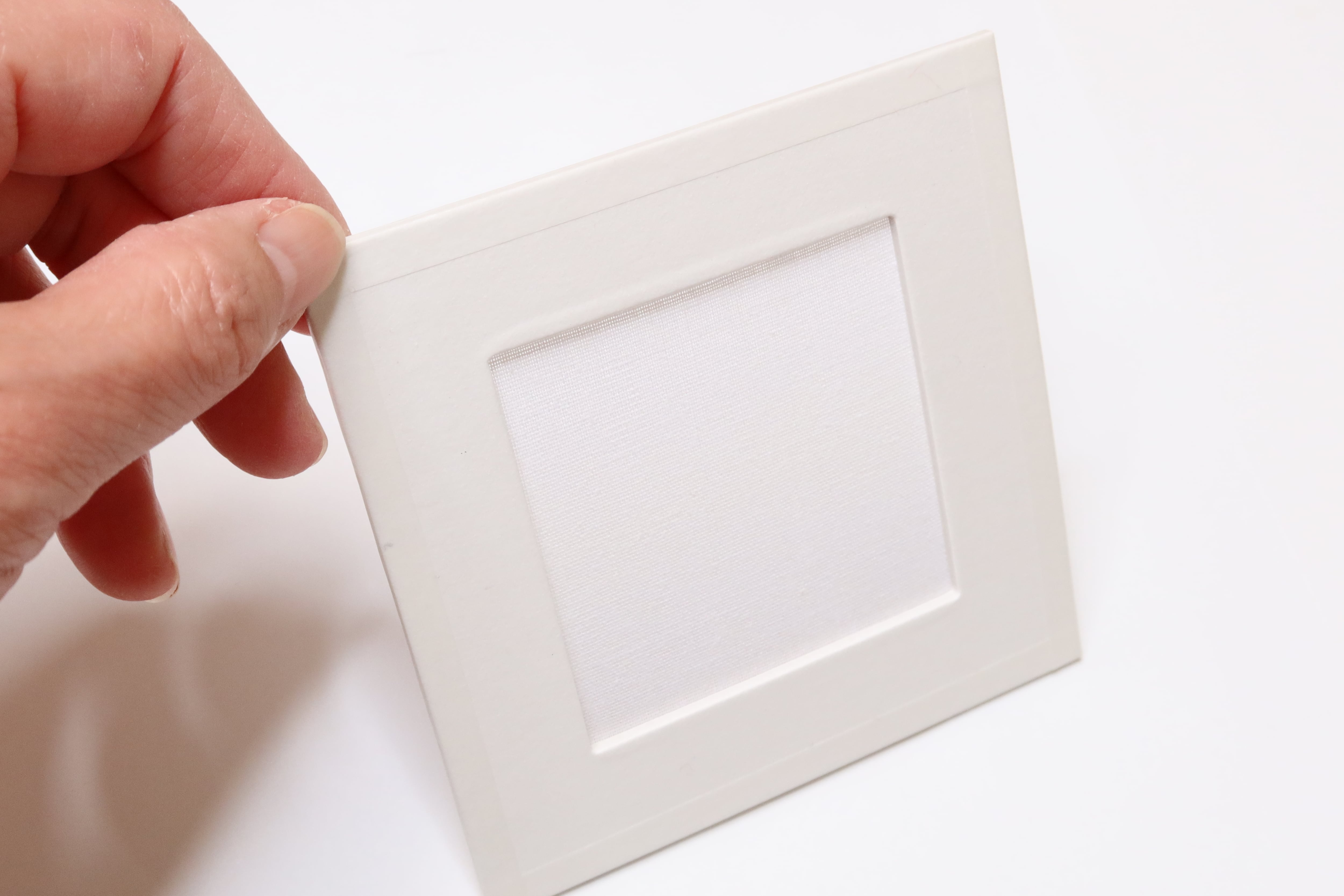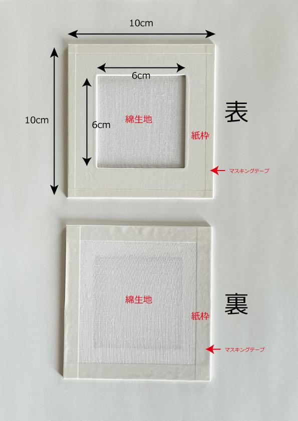 写真1:外枠(紙)10cm×10cm 内枠(綿生地)6cm×6cm